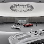 An updated central lighting ring now allows for vehicles to be spotlighted, when needed, and integrated multimedia capabilities are available to abolish the solemnity required for evaluating designs and to invigorate the space with a sense of theatricality when presenting finished projects to the world. The multimedia elements are seamlessly integrated into the dome skin and a steel soffit ring. Nearby, the design of the new control desk takes its form from a 1940 Cadillac hood ornament.