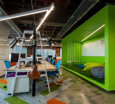 The Gentera Innovation Lab is located inside its corporate offices in Mexico City. The approximate area is 1,450m2, occupying one floor inside the building where it is located. The design concept is based on 2 guiding principles; these principles are collaboration and flexibility. Of course everything is focused on promoting Innovation and New Forms of Work.The architectural plan is divided into 2 principal areas. One for the use of internal employees and the other for the use of visitors and employees of Gentera.In the part for the use of internal employees there are a variety of spaces that encourage and promote mobility and flexibility offering different work environments. There are work places that are assigned or permanent but there are also places not assigned to employees. All these communal environments or spaces offer the users places with different characteristics in order to develop their work depending on their needs. In this manner the employees take control of the space and decide where to work, since they can work in different places during various days. The collaboration spaces are designed to address different needs and functions. There are spaces open, private and of different dimensions. Among the work solutions, there are also more traditional spaces such as formal meeting rooms as well as private offices. However this space is radically different from the rest of the offices of Gentera. The entire space feels different since even aesthetically the image changes since different concepts, colors, textures and finishings were used. But always maintaining the roots and values of Gentera. With the aesthetics it was attempted to reflect its clients and employees, always having the human being as its principal motor. In the second area of the floor is the more public section, which is focused on collaborative and meeting spaces. These spaces are designed for developing projects at different scales and for different users. In fact one of the objectives is that the space function as an incubator of ideas and new projects. They can be external as well as internal. In the access to the space there is a reception where the use of the spaces is coordinated. There are spaces of different dimensions in order to accommodate work groups also of different sizes. And the technology is integrated into the spaces. There are audio, video and data solutions that help the users work under optimum conditions. The furniture also supports the concept of mobility and flexibility since most of it can be moved, adapted and accommodated as needed. Another of the virtues of the space is that it is easily adaptable to accommodate large groups for talks, events and networking among all the users.The Innovation Lab acts as a different space where new forms of work are applied and its users change their form of work in order to create new projects and solutions that apply in their daily activities.
