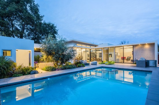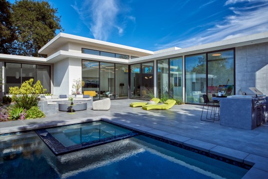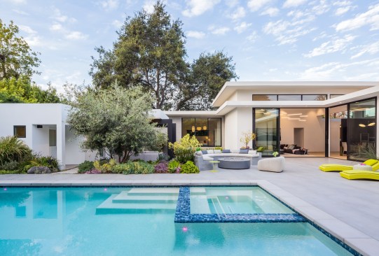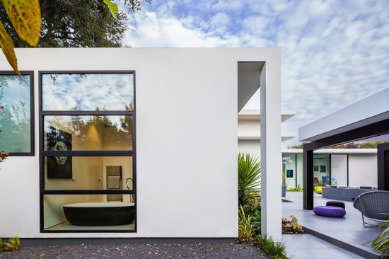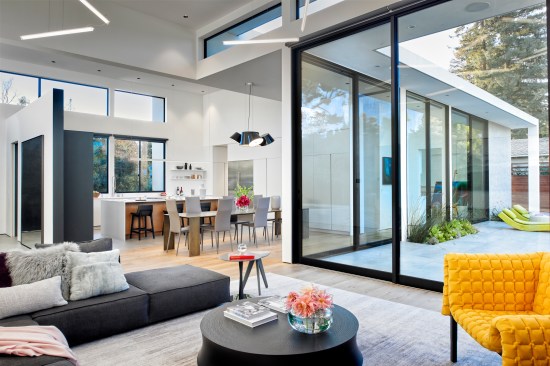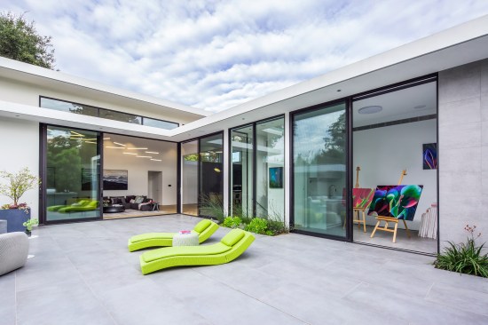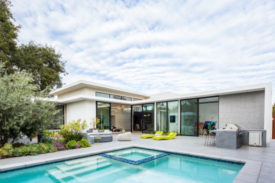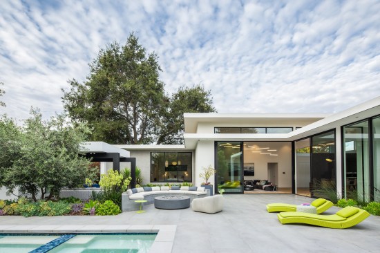 Maydan Architects designed Geometric House, named for its angular design scheme, for a local artist and her husband, a Senior Tech Executive. Located in Los Altos, California, the 7,267 square-foot modern minimalist home boasts 4 bedrooms, 4.5 bathrooms, and a guest house with an additional bed and bath. The homeowner tasked Maydan Architects to create a space befitting an artist. The resultant design is striking and one-of-a-kind, with a symbiotic relationship between the architecture and the artwork it frames, both artistic mediums drawing inspiration from and complementing the other.