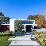 Geometric House has many sustainable elements including the use of solar panels, a geothermal heat pump, and the use of green building materials, such as zero VOC paints. LED lighting, electric car plug-ins, low water landscaping, and tankless water heaters add additional layers of sustainability.