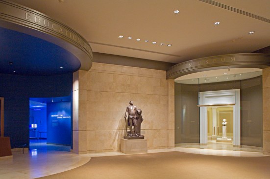 A second new 41,000-SF facility houses the new Museum and Education Center. The Museum showcases objects and artifacts relating to the life and times of George Washington in 6,000-SF of exhibit space, including a 1000-SF changing exhibit area. The engaging and interactive Education Center features multi-media and interactive exhibit galleries, multiple theater experiences, classrooms and distance learning facilities focused on providing innovative learning opportunities for school children, families and researchers. In a separate section, more traditional museum galleries showcase objects relating to the life and times of George Washington.