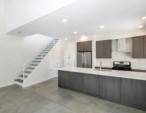 Interior amenities include exposed concrete floors throughout the Main Level, a two-story living space anchored by a fireplace, a galley kitchen, high-quality building materials and energy-efficient natural gas appliances. The focus of Georgia Hill is on energy conservation and minimal maintenance.