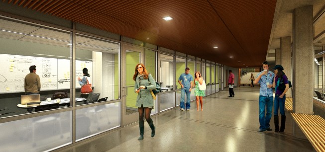 Renovation statistics include 63,259 square feet of floor space and four stories at Glenn Hall; 53,116 square feet and three stories at Towers Hall; and 8,400 square feet at the New East Campus Commons. The Glenn and Towers renovation is targeted for completion in 2015.