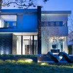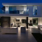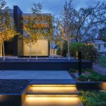 What first greets the visitor to this Santa Monica, CA house is the generous front setback, and the landscape design by Z Freedman Landscape Architecture. A lighted series of steps lead up around a soft bed of fescue grass and a mature sycamore tree, past a stand of saplings. Black textured Basalt stone tile from Norstone USA frames the entrance. This project was an opportunity for our client and Marc Whipple to enter into a true collaborative adventure. Julie Cantor had in mind for years a modern take on an NYC loft space with an open volume, skylights, and very little strict division between rooms. A friend thought that sounded like a house she had seen ā Whipple Russell Architectsā Summit House in Beverly Hills. Julie loved the Summit house and hoped for a smaller version to fit on her suburban lot.