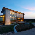 Native limestone, triple LowE glass with thermal break mullions, radiant roof design, rain screen wall design, LED lighting, 5 zone HVAC system, point of use water heating, operable windows and numerous other sustainable materials and systems were incorporated into the design. Virtually the entire site was returned to native grasses with only a select area receiving low water consumption agaves and yuccas.