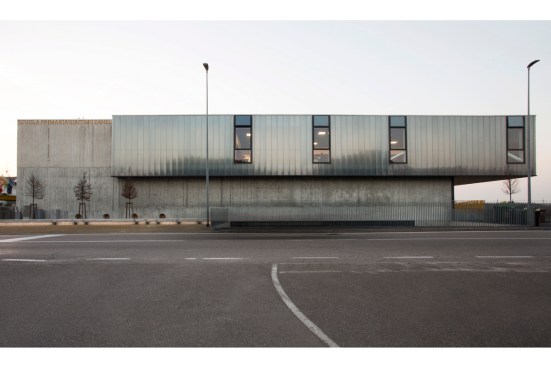 The shelter existing in front of the entrance hall, outside the school fence, is an important element of urban mediation because it relate the double high element of the entrance with the scale of the detached houses existing in around.