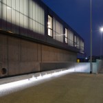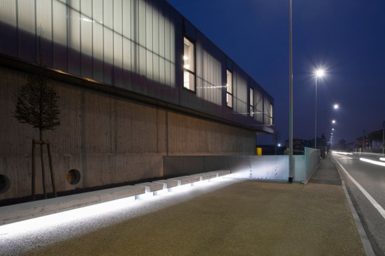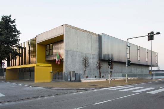 The new building is designed as a reconstruction and expansion of a previously existing one lying parallel to the “strada della Rizza” and looks like an inhabited wall that protects the school from the nearby road. For this reason, it present a 3.5m high basement in concrete without any windows that look like an infrastructure’s construction.