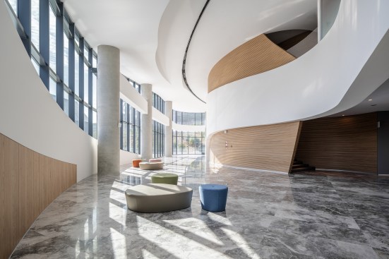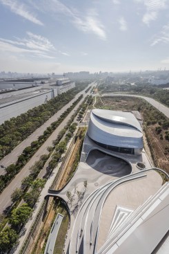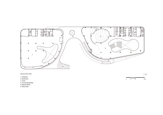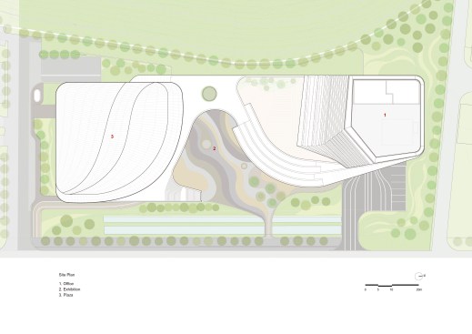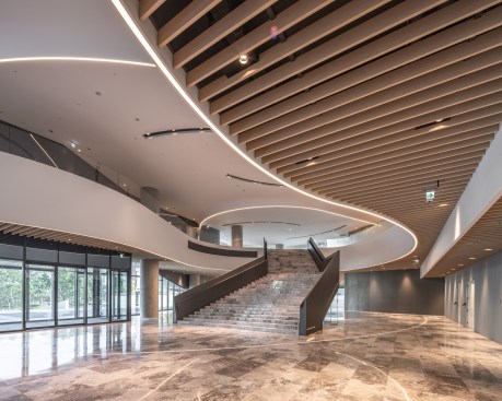 Located within the Central Taiwan Science Park, the Giant Headquarters project will undoubtedly become a landmark upon completion. In terms of architectural design, the building form is dynamically sculpted to evoke Giant’s technological prowess, while its curvaceous shape and sustainable design features evoke the simplicity and eco-friendliness of the bicycle. The tower design takes full advantage of its unobstructed surroundings with floor-to-ceiling glazing on three sides and a generous 4.5m floor height to allow in ample natural light. Appropriate shading is provided by the architecturally expressive undulating slab covers and deep south-facing balconies. The expressive form of the exhibition hall along with an open plaza completes the overall composition.