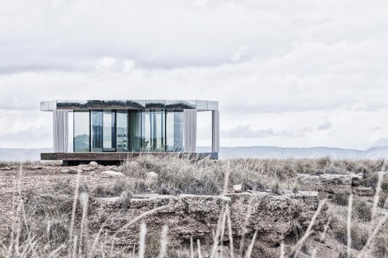 Excerpt from AKT II structural engineers: “This is the third iteration of our collaboration in research and design with OFIS Architects, continuing our exploration into the intrinsic structural nature of glass and timber. Set in the harsh weather conditions of Spain’s Gorafe desert, the unit uses the vertical glazing panels of the envelope as structural walls, resisting the desert’s high-speed winds and supporting the timber stressed skin roof. Our Envelopes team developed bespoke details to accommodate the structural function of the glazing, and supported the client during the procurement phase.”