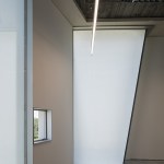 The product of this system is a series of dynamic interior spaces that are limpid, open, and milky-white. The principal entry, at the joint of the two wings, funnels into a skylit atrium with a (now de rigueur) grand stairwell that does multiple duty as informal gathering space and amphitheater seating.