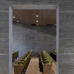 We are very enthusiastic about the simple planar structural pieces of sandblasted concrete which begin with the angle of the inclined roof plane and give character to the inner spaces of the building in the spirit of simplicity and directness employed by Mies Van der Rohe’s original building. As an educational building it tells us how it is made. Winston Churchill said “First we shape our buildings, and then they shape us.”
