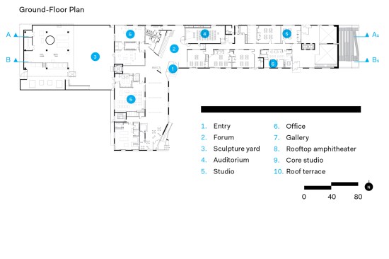 There are 23 studios shared between the core program and junior school and 8 core-fellow studios. All of these have been designed with flexibility, great light, and fine proportions.