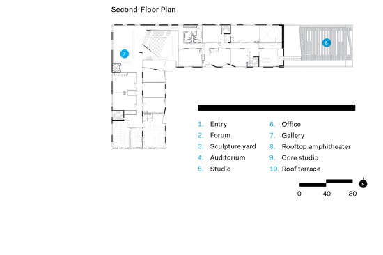 The new building marks a considerable expansion for the school, a center for artistic education for students ranging from age three to adults as well as emerging artists. Overall square footage more than doubles from 39,000 to 93,000 square feet. The additional space means that for the first time the Glassell Junior School (serving ages 3 to 18) will be housed in the same facility as its Studio School (for adults) and its advanced Core Residency Program (for emerging artists). With the new facility, total student population is projected to grow from 7,000 to 8,500.