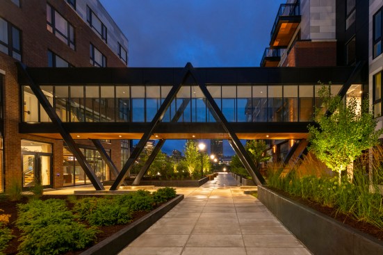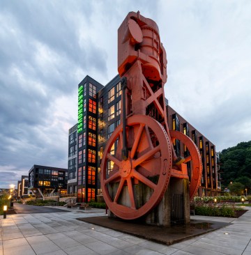 Glasshouse shares a rich history with the City of Pittsburgh and the neighborhoods which surround it. Pittsburgh was known as the glass capital of the United States, with more than 80 percent of the glass in the United States produced in the city by the 1920’s. Glasshouse is a new, mixed-use development overlooking the Monongahela River. Its name pays tribute to the local history of glassmaking and the craftsmanship that was present on the site in years past. The project site is geographically defined by the 1000’ wide Monongahela River to the north, the 400’ high Mount Washington to the south and is framed by the Fort Pitt and Smithfield Street Bridges to the west and east with spectacular views of the city. Hord Coplan Macht’s design for the new building includes 319 market-rate apartments, ground-level retail space, distinctive amenity spaces and structured parking. The centerpiece of the project is a distinctive ‘jewel box’ feature boasting a two-story amenity space with entertainment, conference room, private dining room, game room, soft-seating and covered outdoor spaces overlooking beautifully landscaped courtyards. Other interior amenities include a bicycle repair and storage room, and pet spa. The residents will have access to a swimming pool, bocce court, landscaped lounge seating with fire pits, outdoor kitchen and dining areas, with magnificent views across the river to the Pittsburgh skyline. Additionally, the site lies along the Great Allegheny Passage, a popular bike trail that connects Pittsburgh to Washington, D.C. Residents will have access to a free, on-site bike-share program and various sustainable design elements which will promote healthy lifestyle choices. Construction for Glasshouse is expected to be complete in early summer of 2019. Details: 319 Units 3,000 sf of Retail Space 335 Parking Spaces NGBS Certified Green Homes