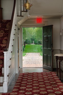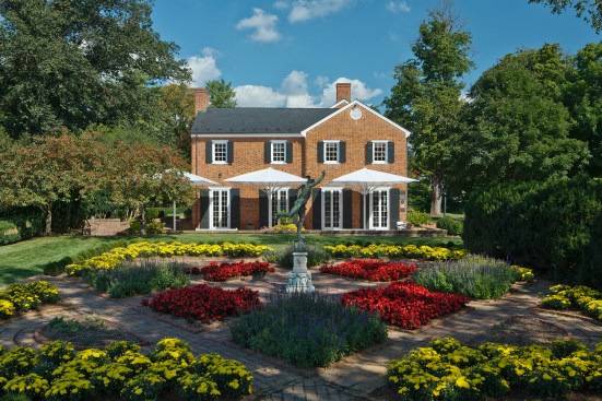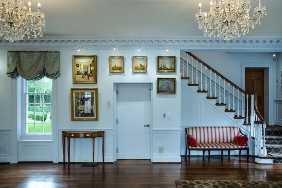 The small, original brick farm house, built by Robert Wood in 1793, remains largely intact. The house was re-imagined in 1959 by Wood’s descendent, Julian Glass, and Glass’s partner, R. Lee Taylor, as a Colonial Revival country estate. At this time, Julian and Lee removed the non-original wings and porches, and added new wings. The two men, who were romantically involved, created a lifestyle full of art, antiques, gardens, formal dining, and garden parties.