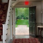 The first floor diaphragm was reinforced. All new mechanical, electrical, and plumbing systems were installed, including a new, four-pipe HVAC system. Longstanding water problems were addressed. The old brick terraces had drained water towards the house; they were re-laid. The existing brick French drains, which allowed water to seep through the foundation walls, were retained for visual continuity, but new copper gutters and downspouts were installed. (The original gutters were removed by Julian during the 1959 construction project.) A new, accessible lift was installed into a 1959 era wet bar which was located under a staircase. Frameless glass doors were added to the front and back doors, which allows visitors a view to the formal gardens and allee of trees. A sunken terrace was reworked to accommodate larger numbers of people at parties, and new, oversized umbrella structures provide shade, without being permanently attached to the house. At the rear of the house, an inclined brick walkway was rebuilt to provide accessibility across the formal gardens and into the house.