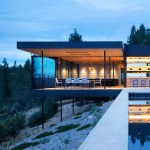 The Glen Ellen Aerie house rises to the greatness of its site, not by overpowering but through elegant restraint. The thinnest columns support floating slabs, lifting the building off of the site. This respect for the existing land is made more evident in the site plan, where a minimal footprint demonstrates how simple rectangles can be the most agile solution when architecture meets topography.