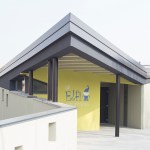The area identified for the new building is inserted within the large green portion on the western edge of the existing kindergarten, in a free area, bounded on the lower part by an internal road to the block – Via Don Bazzotti, from where the main entrances take place – and in the upper part by a rectangular sector within which a mini track has recently been built for the road safety education of children. The project falls within an articulated perimeter in the form of an elongated trapezoid in which the new building must mediate the relationship between the surrounding greenery and the canteen / kitchen building to which the addition was necessarily connected.