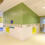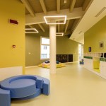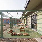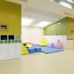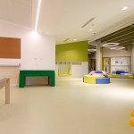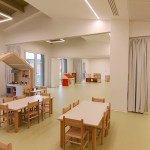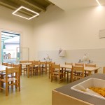 The section space, although organized to have an independence between the moments linked to the activities and the phase dedicated to rest, was conceived to allow flexibility and contiguity between the environments. In order to make the use of the spaces easier, both for the children and for the educators, called to organize and monitor the spaces during the alternation of the scheduled daily phases, the sections have been coupled in a mirror-like way by contacting the two zones dedicated to rest through a mobile partition that can materially determine two separate isolated rooms, or otherwise a single dormitory in cases that foresee or need it. The potential of this area between the two sections, with the intention of the project being modified during the course of the work, tried to be grasped as much as possible also to allow the total opening of the two sleeping areas and, consequently, of the corresponding sections, towards the central space of the ateliers, transforming the central area into a single large room for parties and meetings.