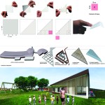 The composition was based on a triangular-shaped figure, 45.2x32x32 meters, whose base is oriented along the parallel axis to the perimeter margin, orthogonal to the Via Bazzotti, and the short sides, which close at right angles , are inclined at 45 ° to follow the existing layout of the existing kitchen volume from the secant plane. The geometric description defines the ideal figure within which the protected external areas and all the interior spaces of the Nido have been organized, sized according to the regulations. The quantification of the surface has been programmed on the basis of a number of 2 sections for a maximum of 15 users each, for a total number of 30 children. In this configuration, the functional layout is oriented with a low vertex to the west, aimed at establishing the entrance opening on the access road, and a high-east vertex closing the eastern front towards which both sections open.