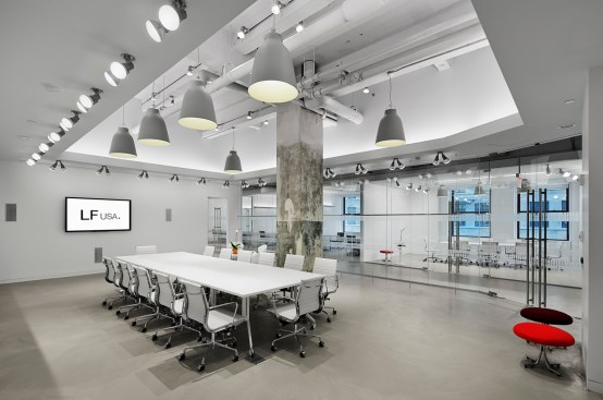 Spacesmith acted as executive architect in the build out of 100,000 sf of space in the Empire State Building, consolidating several women’s apparel brands onto one floor. Hong Kong based architecture firm B&Co’s design mimics a downtown loft, taking advantage of the 17 foot high ceilings. This project is LEED Gold Certified.