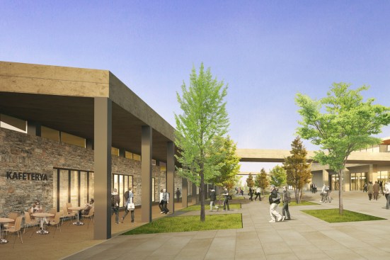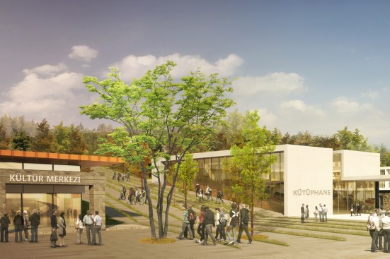 Pedestrians first reach the campus square by walking along the school's front façade. The campus square and the buildings surrounding the library, conference hall, indoor and outdoor sports areas are easily accessible to townspeople. The square also leads you to the meadows and hobby gardens further ahead for outdoor recreational facilities. The project which was awarded with the 1st prize in the national architectural competition was mostly appraised by the jury for its open campus quality and integrated life proposal with the town.