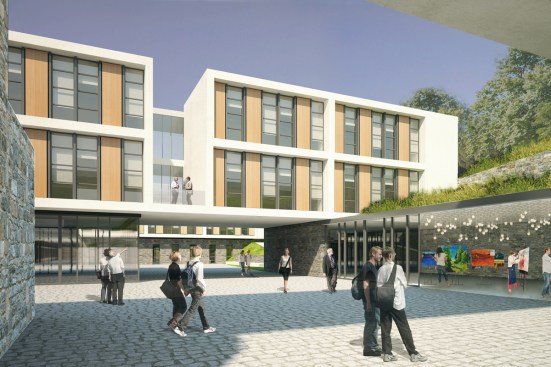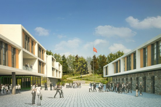 Gokceada is an island in Northern Aegean Sea with small scale masonry houses in organic urban patterns. As it is located on an island, the town is an isolated settlement with limited resources. Therefore the main aim of the Gokceada High School Campus—which includes a high school, vocational school, dormitory, gymnasium, library, and a conference hall—is to create an integrated life within educational-social entity of the school and urban life. The campus will not only be used during school hours, but it will remain accessible to the people of the island 24 hours a day as an open campus, with the intent of sharing limited resources efficiently.