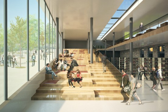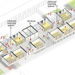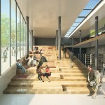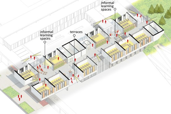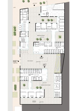 The school buildings also propose an interactive learning environment. Especially the ground floor is transparent with an easy flow through courtyards, encouraging students to participate, be inquisitive and learn from each other. A passerby can listen to the melodies coming from the music room, or a student can observe artwork through the transparent glass façade. The learning environment becomes a versatile space, creating a sense of belonging.