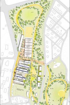 The campus buildings, which will have a total of 18,000 m2 of gross floor area, are planned to be situated on the former building's footprints to preserve the existing trees and use the vast green, and open spaces of the campus.