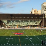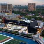When Vancouver, British Columbia–based Patkau Architects and Toronto-based MacLennan Jaunkalns Miller Architects (MJMA) paired up to realize the glamorous new 140,000-square-foot Goldring Centre for High Performance Sport on the University of Toronto’s (UoT) downtown campus, each firm brought award-winning expertise to the table: Patkau’s in university work and MJMA’s in sports projects. Located among the elite cultural institutions on Toronto’s central and rarefied Bloor Street, Goldring brings a contemporary edge to the historic UoT campus—not just with its glowing glass façade but also with its concept of putting athletes on public view. “Goldring is a socially ambitious project,” says MJMA’s Ted Watson, noting that while Toronto is a sports-crazed city it’s not one where sweaty training rituals are often on display—certainly not down the street from the patrons of the Royal Conservatory of Music and the like. “This breaks with the tradition of the introverted sports facility,” says John Patkau, Hon. FAIA, lending the building a reality-TV edge.