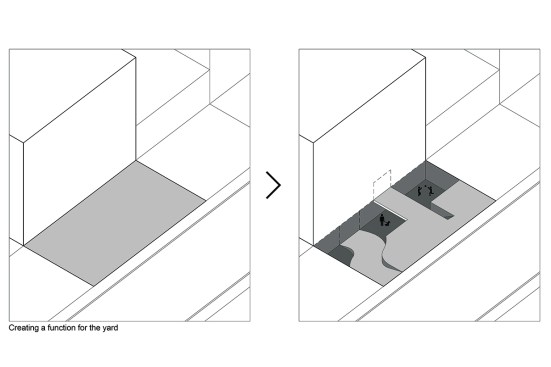 In this project, by lowering a part of the yard as much as one floor, a semi-closed and a secure outdoor space has been created in order to be dedicated to the children's playground and a place for inhabitants to relax or have a friendly chat.