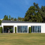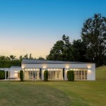 On the interior, we reinterpret the traditional beadboard wall cladding. The building’s interior walls of vertical wood planks sweep around convex and concave curved corners, like the arc of a golf ball or swing of a club. The exterior design comprises white acrylic-resin plaster, standing seam galvanized metal roof, glass and aluminum accordion doors, and a steel and wood trellis. At the end of a 400-yard fairway, the Golf Performance Center provides a landmark structure that honors the history of this property while looking towards the future.