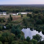When the commission for Grace Farms was announced, it was the source of some puzzlement: What exactly was it supposed to be? With SANAA’s 80-acre compound in New Canaan, Conn., now open, we have our answer—and the remarkable thing is how mysterious it remains. A parish community center that is also a public recreational facility and a stunning bit of landscape architecture, this project from Japanese duo Ryue Nishizawa and Kazuyo Sejima, who worked with New York–based Handel Architects, is hard to pin down, and not just in terms of its program. A glass-enclosed corridor that snakes down a lush hillside, the building is almost a living organism, widening to accommodate internal organs in the form of functional spaces like a library, dining hall, and gymnasium.