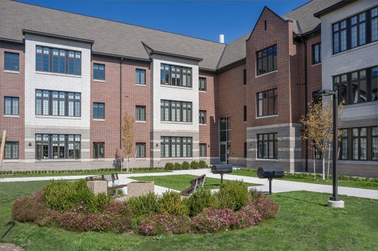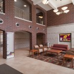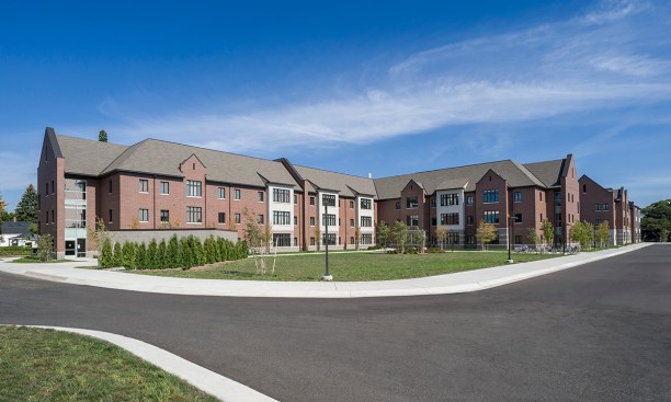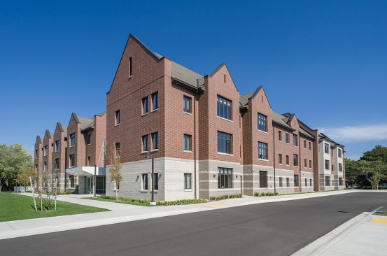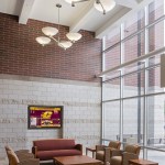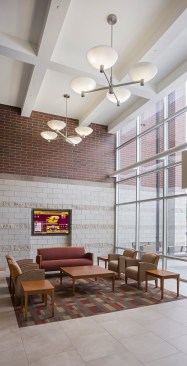 Neumann/Smith designed the two new residence halls to offer state-of-the-art apartment-style housing options specifically tailored to the needs of CMU’s graduate students, who often opt to live off campus. The three-story buildings provide 164 beds in one-bedroom/one-bath, two-bedroom/one-bath, and four-bedroom/two-bath configurations, all with full kitchens, in-suite laundry, and individual suite climate controls. The buildings also include common lounge/lobby spaces, meeting rooms, and a fitness center.