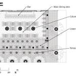 Studio Mode’s lead designer on the café, Svetoslav Todorov, describes how he integrated the interior into the rest of the building: “We brought elements and materials of the building’s façade into the front zone of the café and applied them to the ceiling. We also used sidewalk pavers on the interior floors. This draws the textures of the street into the café, while connecting the profile of the building envelope to the café.”
