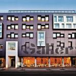 The six-story building has two restaurants on the ground floor, a contemporary art gallery on the second floor, and is capped by four guest-room levels. Bulgarian architect Georgi Bachev took responsibility for the shell and one hotel floor, while several other commissioned architects and designers took on different areas of the building. The risk of competing voices introduced some constraint into the design process; each firm sought to balance uniqueness with overall compatibility. One of the firms, Sofia, Bularia–based Studio Mode, was commissioned to design one of the hotel floors as well as a high-profile destination at street level: Graffiti Café.