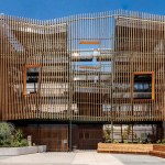 Built on a former brownfield site primarily used by a towing company, Gramercy Senior Housing now serves as a vital anchor in the city’s Western Heights neighborhood, ensuring that residents remain connected to their wider community while still enjoying ample privacy. The design itself embraces this equilibrium with features such as a shading screen of vertically oriented Thermory wood louvers that provides some seclusion to residents. Narrow gaps between these louvers, however, combined with rectangular openings carved into the screen, serve as inviting windows into the site’s interior. Subtle shifts in louver angling also make certain that otherwise straight lines of the façade—which also includes standard three-coat plaster siding and mirror stainless steel on the window surrounds—are not overly rigid.