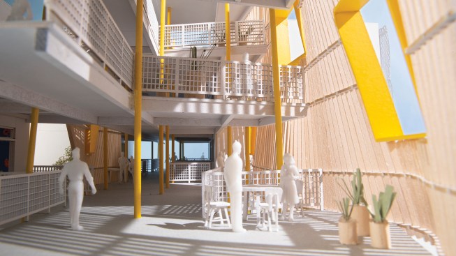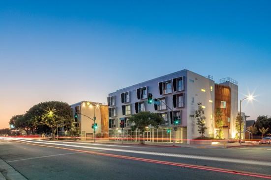 Designed by New York– and Los Angeles–based firm Kevin Daly Architects in partnership with the local nonprofit Hollywood Community Development Corporation, Gramercy was one of the first projects to receive money from Prop HHH, which allocates $1.2 billion toward homelessness reduction in the city. For KdA, the project was a win-win: a chance to design an exceptional structure while serving those who need such housing the most.