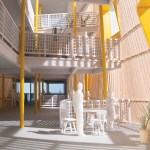More than anything, the residents’ access to community is key. KdA founding principal Kevin Daly, faia, cites the late folk artist John Prine’s “Hello In There,” a 1971 song in which Prine laments the isolation of seniors (“Old people just grow lonesome/Waiting for someone to say, ‘Hello in there, hello’”), as inspiration for the project’s conscious rejection of separation and loneliness, recognizing that excellent design could transform residents’ social lives. “We wanted to make sure that people weren’t locked away inside their units and had a chance to mediate their relationship to their neighbors,” Daly says. “With the main circulation spine and other outdoor spaces, we’re encouraging people to be out and be part of a community.”