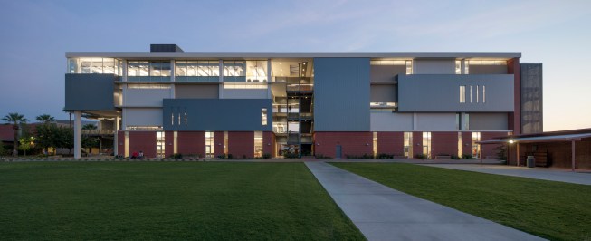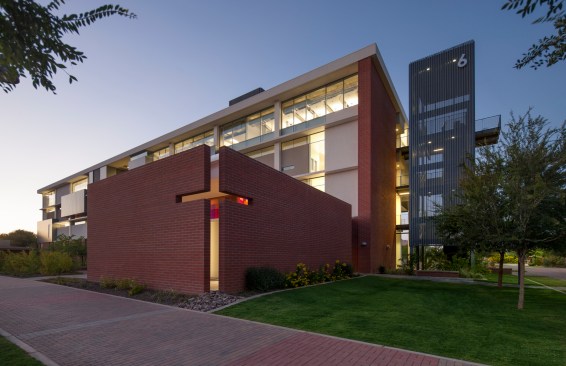 The values-based education imparted by GCU is the basis of the concept that has been developed for the 70,000 SF College of Arts and Science. The skills, knowledge and values that GCU imparts to their students is the essential structure on which the students will develop and flourish in the globalized world. The four-story structure is designed to blend into the developing modern campus fabric while embracing the Christian values and heritage. These form the foundation and structure for a new building, that must also reflect the modern, wildly growing expansion of the University and its diversity of programs. To build on this duality, the brick of the first floor and the concrete structure form the foundation of the building to be in concert with the vintage part of the campus. To reflect the fast-paced and changing face of modern development, metal paneled boxes, growing on the structure, help articulate the individual programs and flexibility found within. This flexibility will be required to grow the University’s individual program offerings.