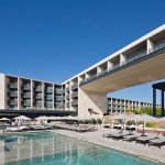 This final block is the heart of the hotel and accommodates the entertainment amenities, with the advantage of the direct contact with the beach. The pools and terraces surround the four-story building providing the rooms and suites with the best views.