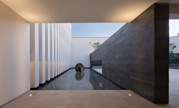 The selection of materials and finishes was based on adaptation to the surroundings, with sand-colored cladding and stone, extensive use of natural wood, native vegetation, water bodies, and warm, indirect lighting, among other details. The project’s largest and most significant spaces were purpose-designed to showcase artworks. The concept of this art was worked in conjunction with the artist César López-Negrete, and his pieces were specifically created for this project.