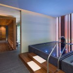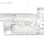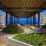 Above this garden and right at the center of the second block there is an open covered pedestrian walkway, with amenities, pavillions and exceptional sea views, which can be seen from the first block. The space beneath this promenade area is employed for the meeting rooms and spa.