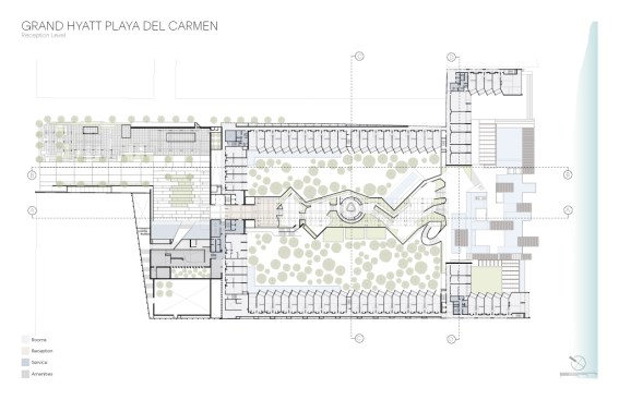 Sordo Madaleno Arquitectos was responsible for the complete architectural design and the interior design of the SPA, pools, fitness center, Grand Club lounge, the brides room, two restaurants and the back of the house. Rockwell Group designed the interior of the ballrooms, meeting rooms, two signature restaurants and the kiosks. Together, Sordo Madaleno with Rockwell Group designed the paseo, guestrooms and suites.