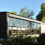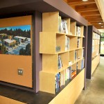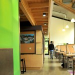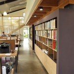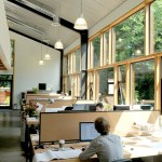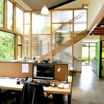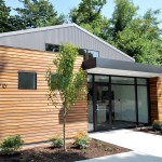 Other features and materials include: Forest Stewardship Council (FSC) wood and low volatile organic compound (VOC) primers and paints. FSC wood is wood that comes from certified forests, forests that are sustainably harvested, or from post-consumer waste. By using low-VOC primers and paints, Coates Design prevents harmful off-gassing and sick building syndrome; in other words, using these materials is better for the planet and for the people and animals that occupy it. Energy efficient lighting, low-flow plumbing fixtures, waterless urinals, a green roof, open office plan (eliminating interior wall materials), recycled glass, cedar rain screen, reflective roof coating, pervious parking areas, and native and drought-tolerant vegetation, all lessen the environmental impact.