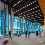 The design expresses the balance of creating an ice facility in Southern California’s desert climate. The design team incorporated the various phases of water throughout, including vapor, liquid and frozen, guiding guests through a sequential experience as they journey through the facility.