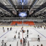 Great Park Ice and FivePoint Arena in Irvine, California combines the largest community ice complex in the region with a training facility for the Anaheim Ducks of the National Hockey League (NHL). The $110 million, 280,000-square-foot project was designed around the vision of Ducks owners, Henry and Susan Samueli, to create a public resource to promote ice sports and health and wellness in the region.