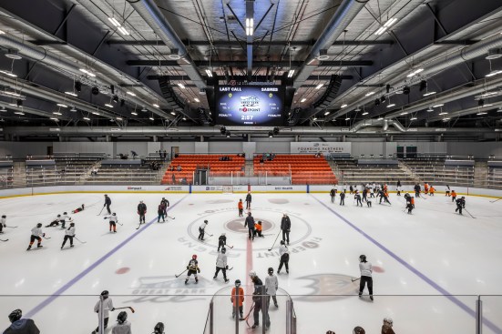 In addition to serving as a center for hockey and skating, community amenities include a pub, amphitheater, classrooms and an array of outdoor public spaces. Three of the ice sheets are designed to NHL regulations; the fourth meets Olympic standards and will serve as the training facility for the U.S. Figure Skating team.