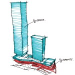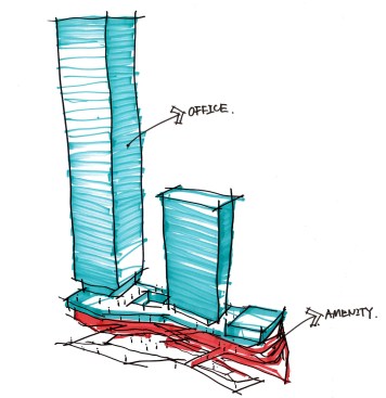10 DESIGN also created highly efficient floorplates for the office towers by giving careful considerations to tenant needs for functional efficiency and flexibility in their fitout design. The result is a large column free floorplate with a centrally located lift and services core, offering maximum usability of space.