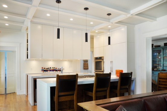 The project is comprised of the renovation of a circa-1930 Craftsman-style residence, a flexible-use 300 s.f. addition, a new 240 s.f. garage, and selective landscaping. With a very modest budget of $94/s.f., the design strategy focuses on careful editing of existing building elements in order to establish a more open floor plan that improves connections to natural light and garden views. The renovation encompasses three levels and a basement, which are unified through a clean white interior color palette that amplifies natural light while providing a neutral background for the client’s colorful art collection.